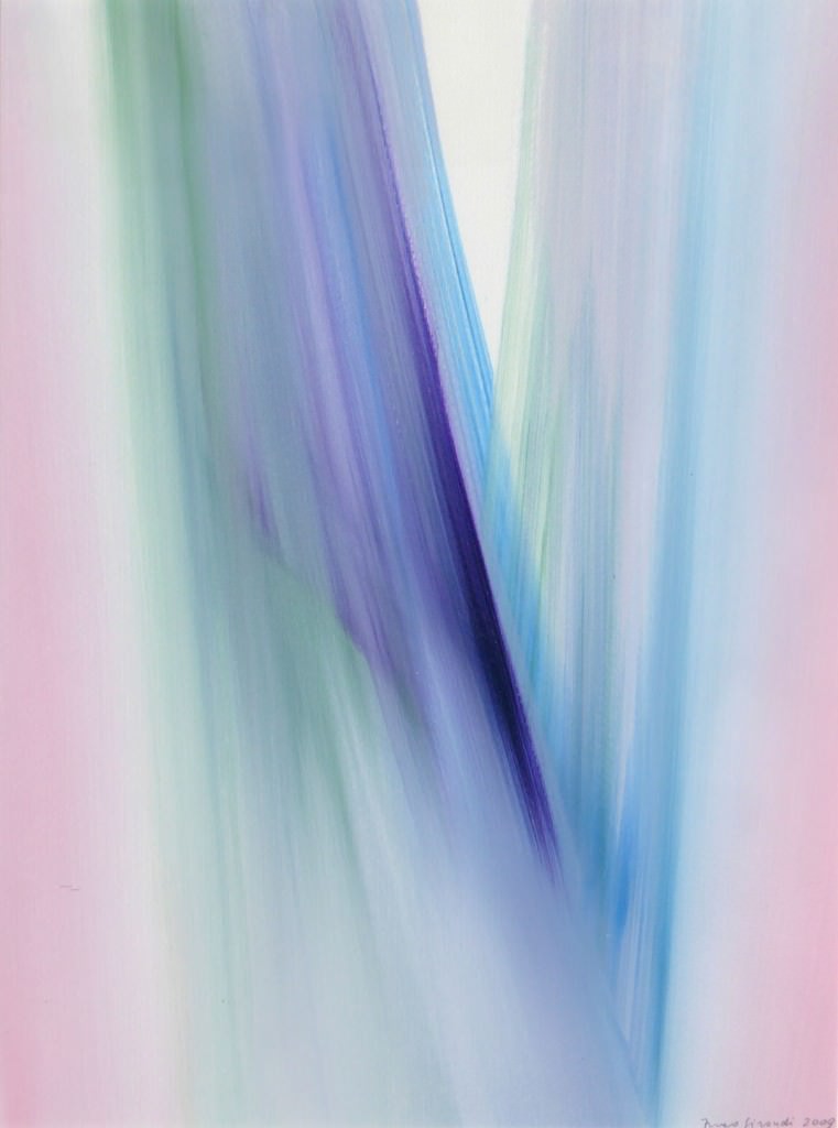 Un’eleganza segnica degna di un Dufy, un gesto sicuro, forte e dinamico scatena una energia luminosa e cromatica