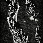 Franco Inz: le mani che guidano il bullino nell’incidere la lastra, la morsura, la granitura, conferendo un’enorme intensificazione psichica ed espressiva, alle figure che ritrae, sature di campiture nere e grigie.