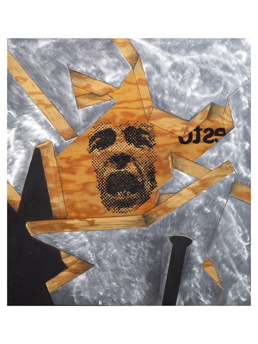 Un volto che grida rabbioso per un mondo nuovo e per riconquistare la propria umanità, e che emerge con tutta la sua forza abbattendo un muro di metallo e legno spezzando chiodi e decapitando stelle. E’ questa la straordinaria immagine simbolo della personale “Esto Urlo” del maestro Franco Ionda
