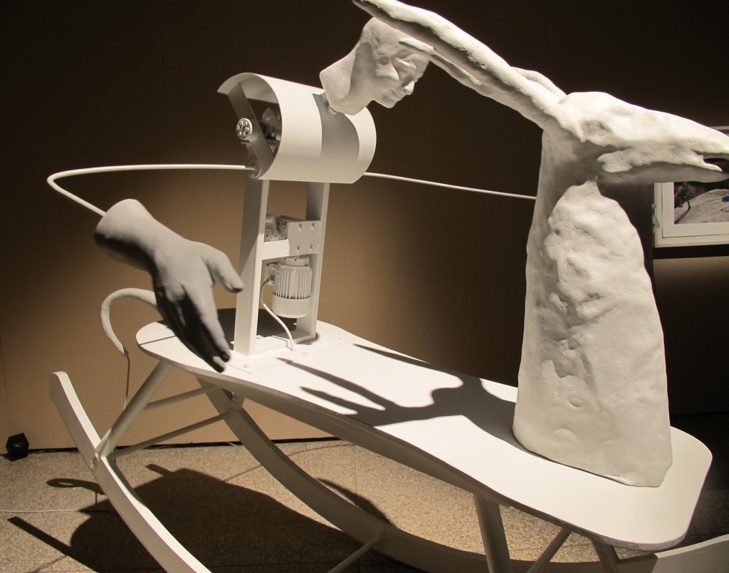 L' uso del bianco, le sculture meccaniche, le performance del coniglio (una donna completamente nuda, dipinta di bianco, con una maschera da coniglio, si aggira nelle fiere e sulle sculture meccaniche di Franco Losvizzero) lo hanno reso riconoscibile, i disegni e i quadri piu' intimi ci sveleranno la materia di cui é fatta l' arte di un artista che guarda lontano... nei meandri del suo inconscio.