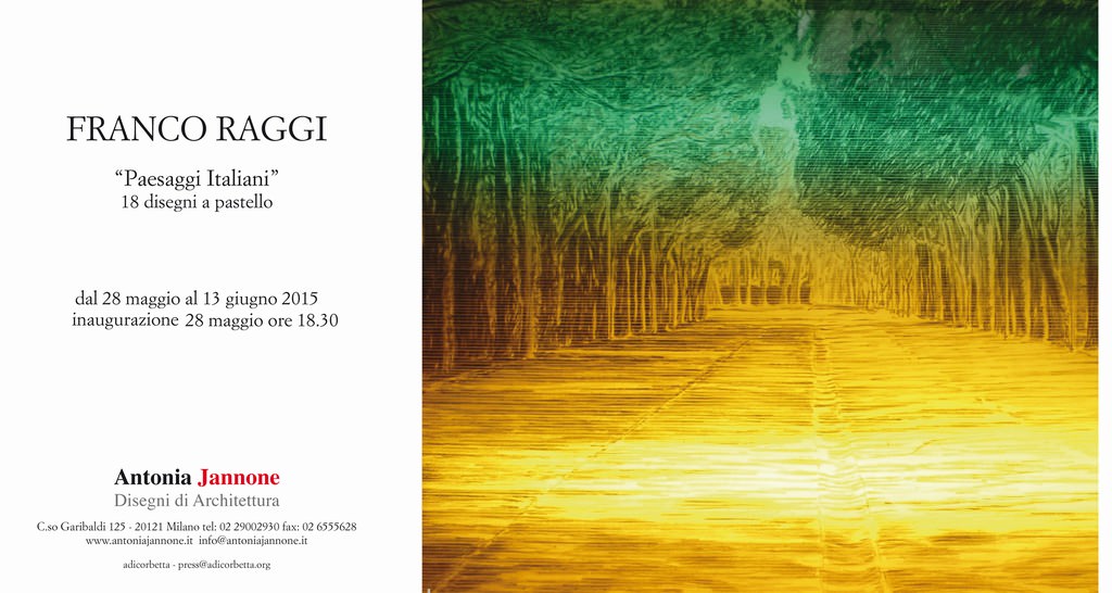 Franco Raggi, a distanza di dieci anni dalla prima mostra, conferma la collaborazione con Antonia Jannone grazie a una serie di nuovi disegni. 18 opere a pastello grasso su carta plastificata, tratte da altrettante cartoline di paesaggi italiani, per indagare il processo di banalizzazione del bello (ma talvolta anche del brutto) che tali oggetti operano sulla realtà che ritraggono.