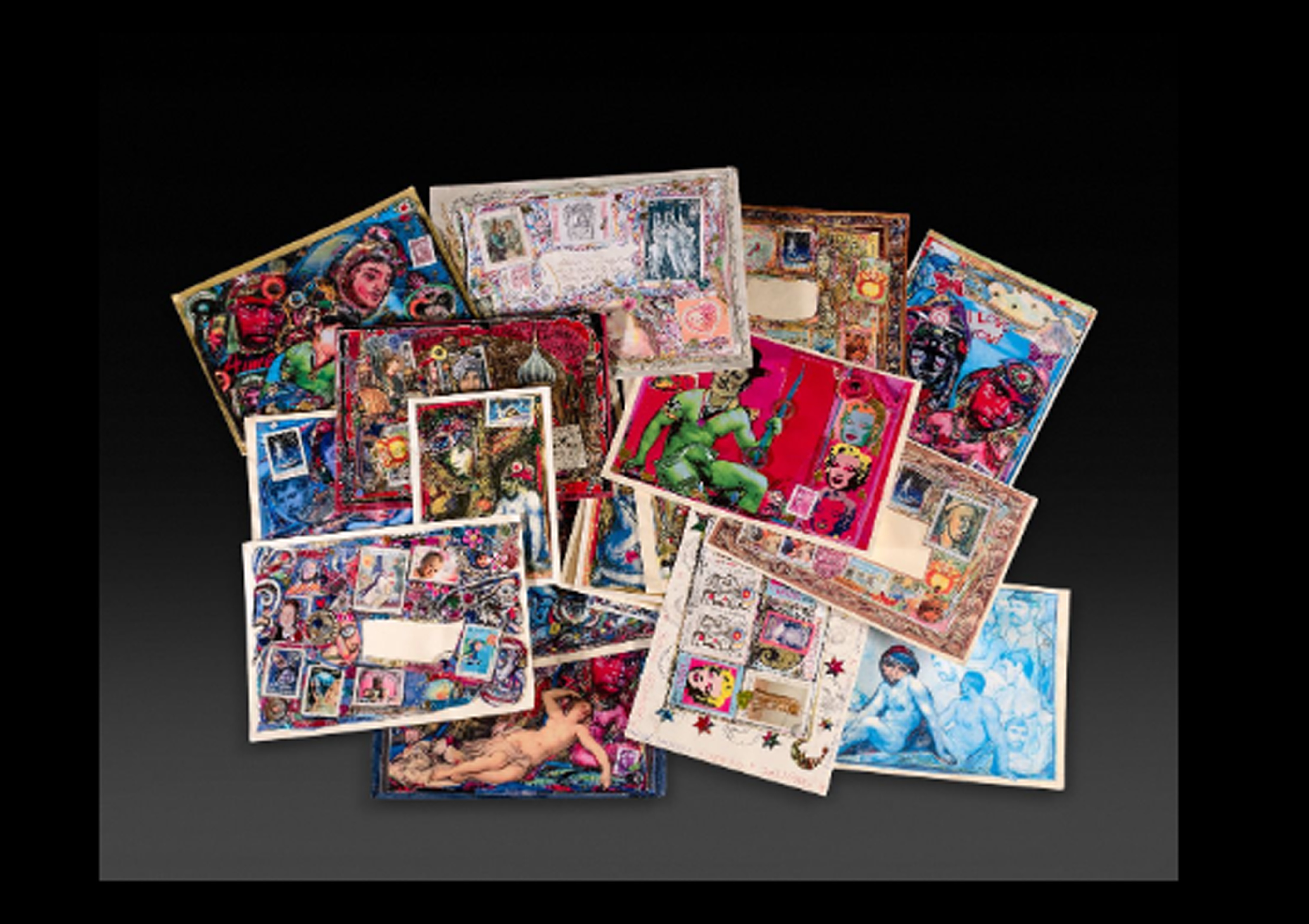 Il titolo CORRISPONDENZE in effetti, se da un lato intende richiamare l’attenzione su Dubuffet come punto di riferimento di Canavy, dall’altro mette al centro il rapporto di amicizia e di dialogo artistico che Canavy ha intessuto con Francesco Proia, al quale, nel corso di vari decenni, sono indirizzate via posta le opere di piccolo formato che sono qui in mostra, collages e polimaterici, tutte su buste in cui indirizzo ed affrancatura sono del tutto integrati nella composizione. Questo nucleo di mail art, ammirevolmente coerente, costituisce la raccolta di opere di Canavy ricevuta e custodita da Proia. E questo atto di cura, esteso nel tempo, trova espressione in tre opere recenti dello stesso Proia, che in mostra fanno da contrappunto a quelle di Canavy, rappresentando anche una restituzione a distanza, di stima e di riconoscimento.