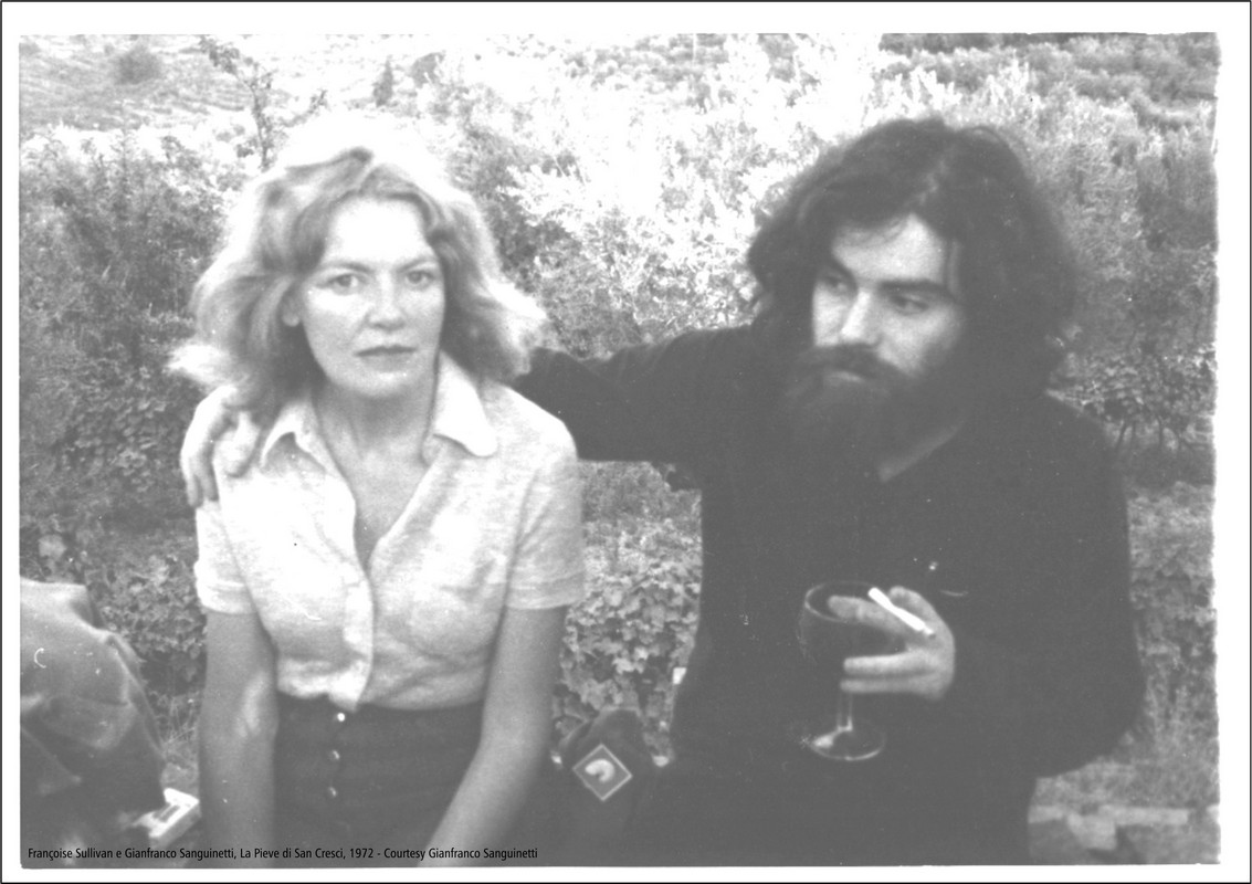 Durante gli anni '70, Françoise Sullivan visitò l'Italia in diverse occasioni per immergersi nei movimenti artistici che si stavano sviluppando attorno all'Arte Povera. A Roma, ha incontrato diverse figure di spicco nel mondo dell'arte come Jannis Kounellis, Mario Diacono, Emilio Prini, Germano Celant e Graziella Lonardi. Soprattutto nell'estate del 1972, rimase in Toscana con i suoi figli, dove incontrò regolarmente Gianfranco Sanguinetti, un teorico rivoluzionario e membro della sezione italiana situazionista internazionale. Accanto a lui e in diverse occasioni, ha incontrato Guy Debord, fondatore del movimento situazionista e autore di La società dello spettacolo. In Françoise Sullivan. Opere dall'Italia, Sullivan visita ancora una volta i siti in cui si sono svolti questi incontri, un periodo meno noto della lunga carriera dell'artista. Qui mette in mostra opere create in Toscana e a Roma o ispirate a questi momenti che incarnano una vera svolta e danno slancio alla sua visione artistica.
