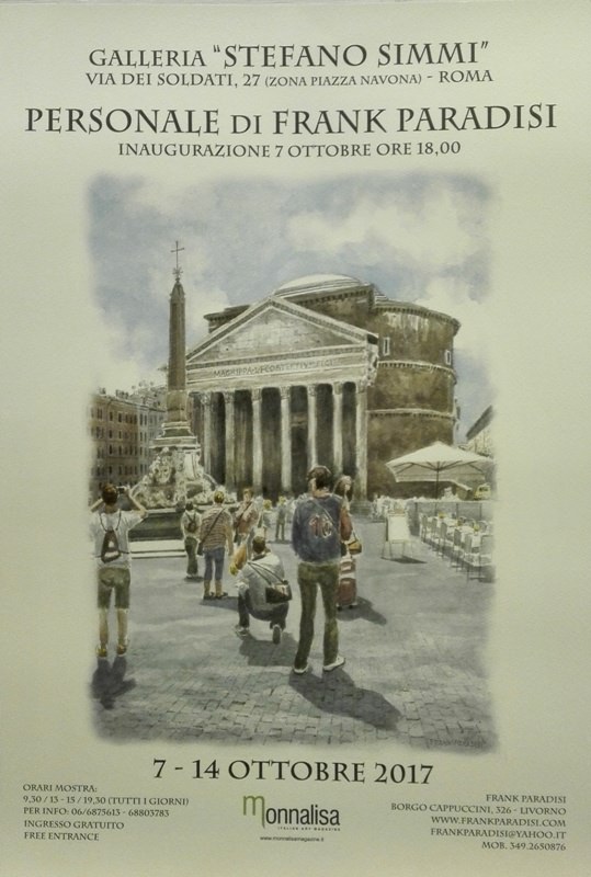 Si inaugura 7 ottobre 2017 personale di Frank Paradisi; la mostra sarà presentata alle ore 18,00 alla presenza dell’artista, presso la centralissima Galleria Simmi in Via dei Soldati 27, Roma. La mostra rimarrà aperta fino al 14 ottobre 2017.