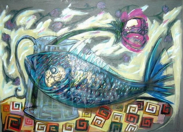 In accordo con la sua espressività estroversa ed esplosiva le opere di Franklin Mata si ispirano alla vita quotidiana dell’isola, con i colori vivaci dei suoi Caraibi, sfumature e gradazioni abbaglianti, violente come la luce di quei luoghi, spazi ricchi di fiori, pesci, animali o semplici oggetti come una caraffa od una barca.
