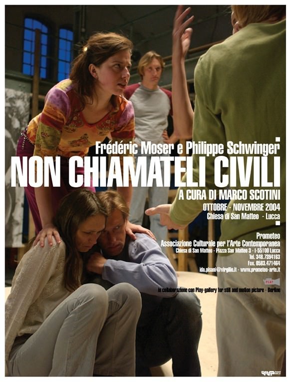 Con questi due lavori Frédéric Moser e Philippe Schwinger rispondono in maniera lucida al “mercato mondiale dell’emozione” con cui i media propongono guerre filmate e blitz in diretta. Più che deprecare i fatti, “Non chiamateli civili” diventa una forte denuncia dell’amnesia occidentale. In questo senso si spiega la necessità di un rituale come quello teatrale: questo ripetere sempre qualcosa, far ritornare dei gesti, delle figure, ciò che è stato visto almeno una volta (visto bene, visto male, non visto)