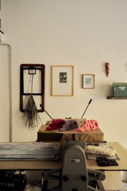 Il progetto di mostra prende avvio dalla residenza artistica “Post Print Media”, un’iniziativa della Fondazione Il Bisonte curata da Silvia Bellotti, che ha visto Andreoni e Tirabosco partecipare nel luglio 2024. “Post Print Media” è un progetto di formazione e ricerca artistica che promuove la stampa d’arte come pratica in costante evoluzione e rinnovamento, capace di unire sperimentazione tecnica, processualità creativa e ricerca speculativa. La residenza ha unito l’utilizzo delle tecniche tradizionali di stampa con le pratiche innovative degli artisti, proponendo una nuova concezione della grafica come “dispositivo teorico” in dialogo con la filosofia e con le altre espressioni dell'arte contemporanea.