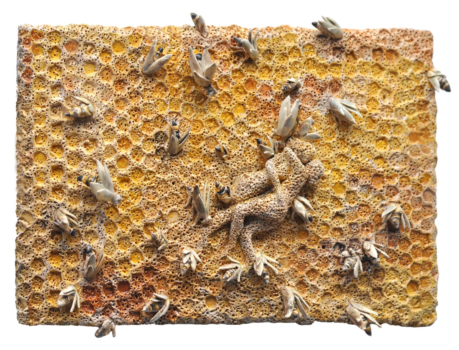All’interno di questo orizzonte condiviso, alcuni artisti hanno indagato direttamente la figura dell’ape, altri si sono concentrati sull’universo vegetale come matrice simbolica e di estremo formalismo. La ricerca si snoda tra elemento rappresentativo, botanica, elemento organico e veleno – inteso come elemento di tensione, attacco o difesa –, fino a toccare la complessità strutturale e sociale dell’alveare o l’ibridazione tra regni differenti.