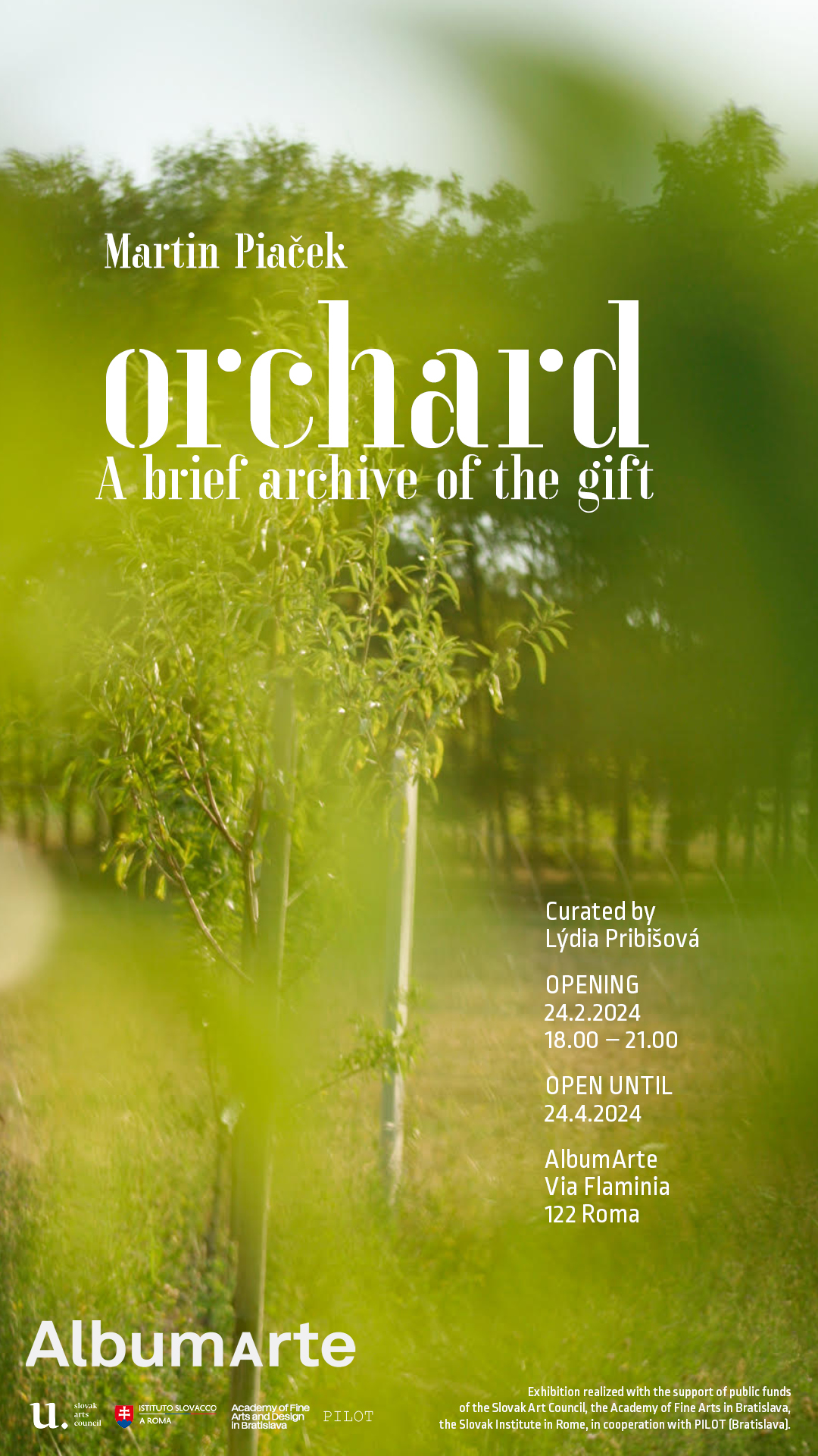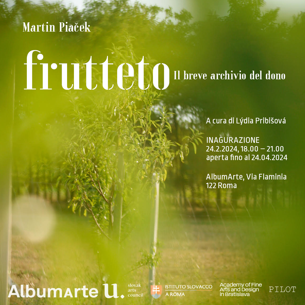 Curatrice del Padiglione Slovacchia alla 60ma Biennale di Venezia a fine aprile, Lýdia Pribišová, cura il suo sesto progetto ad AlbumArte, coinvolgendo uno dei più interessanti protagonisti della scena artistica slovacca Martin Piaček (Bratislava 1972) e realizzando la prima mostra personale dell’artista in Italia, dal titolo Frutteto. Il breve archivio del dono.