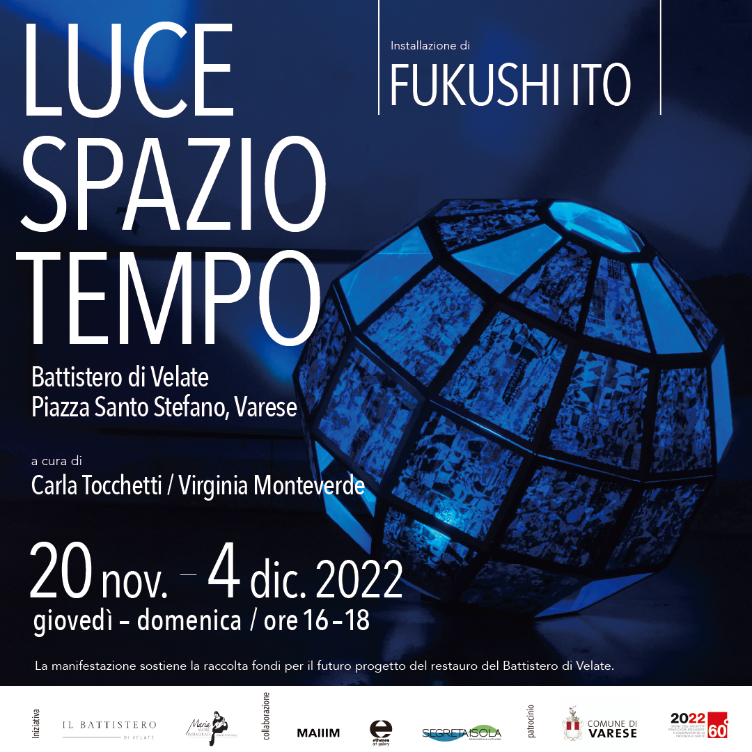 Si inaugura il 20 novembre a Varese, Battistero di Velate, la mostra “LUCE, SPAZIO, TEMPO.” dell’Artista giapponese Fukushi Ito, a cura di Carla Tocchetti e Virginia Monteverde: una installazione di opere luminose, realizzate con computer drawing su film trasparente e sfere d’acciaio, che rappresenta il punto di arrivo di una lunga ricerca dell’Artista, dedicata allo scrittore Yukio Mishima (1925-1970). E’ infatti decennale il percorso, durante il quale Fukushi Ito ha sviluppato, attraverso la sperimentazione di linguaggi, materiali e nuove tecnologie, i temi del celebre scrittore militante, realizzando opere di grande impatto visivo ed emotivo. L’installazione è stata esposta nel 2022 a Venezia nel periodo della Biennale.