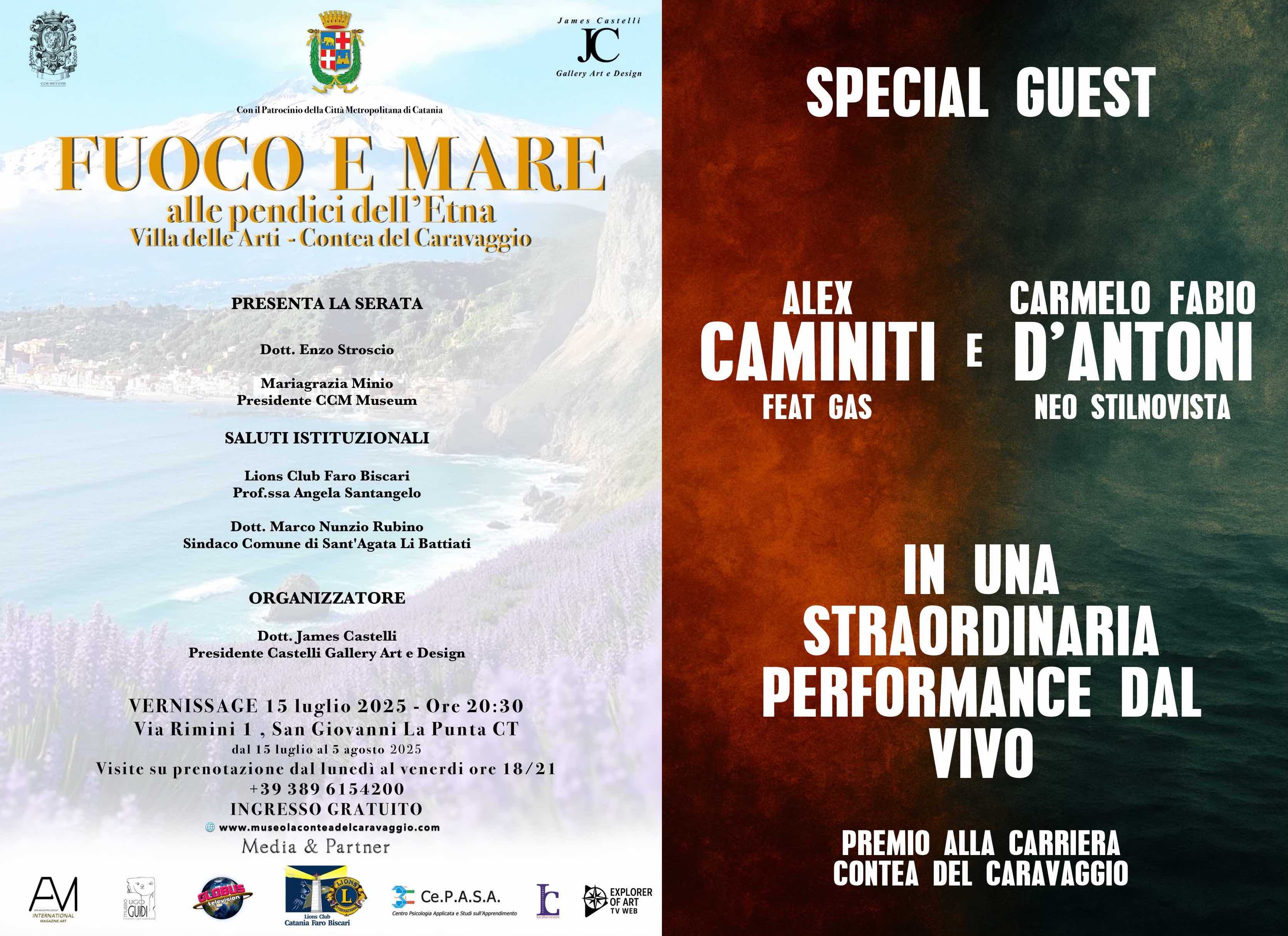 Mostra Internazionale d'Arte Contemporanea FUOCO E MARE Villa delle Arti – Contea del Caravaggio San Giovanni La Punta (CT) 15 luglio – 10 agosto 2025 Inaugurazione: martedì 15 luglio ore 20:30