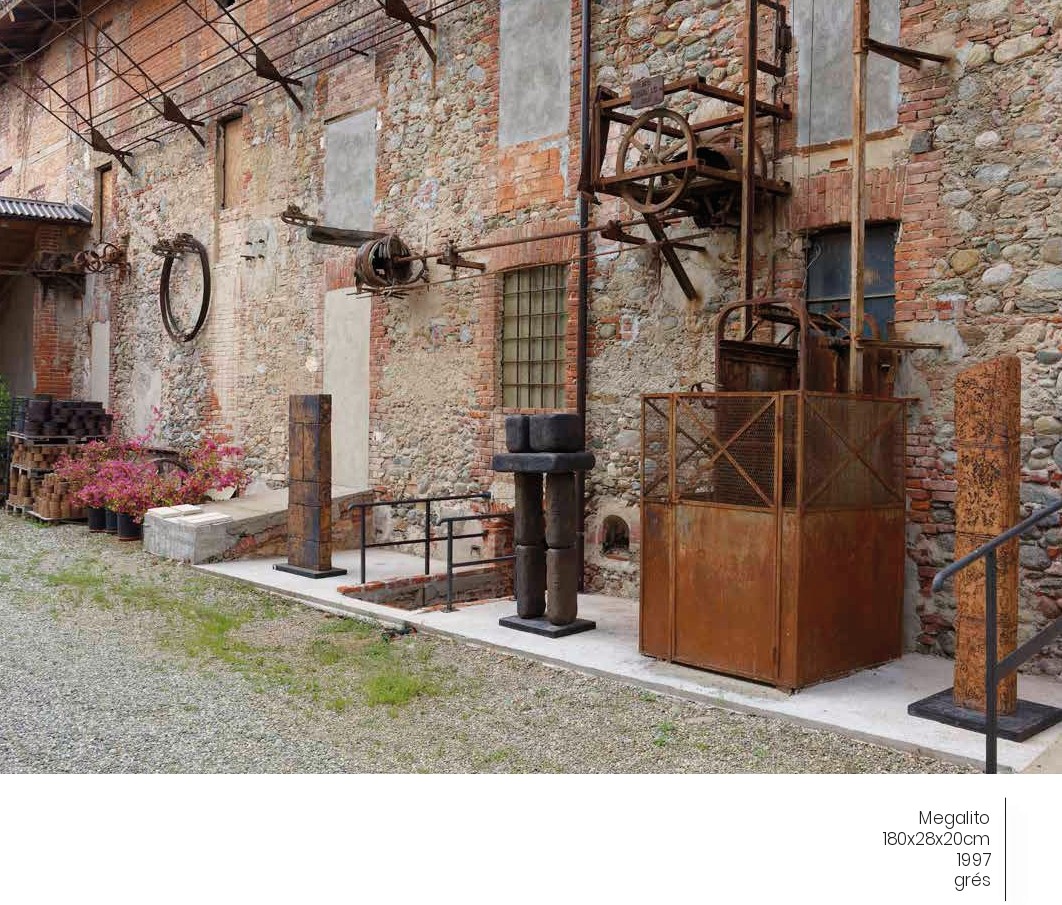 Le esperienze di lavoro in Italia e all'estero hanno lasciato un segno indelebile sulle sue opere, come si può percepire nei “Megaliti per Barge”, dove l'equilibrio raggiunge la perfezione e la forma si rasserena, si addolcisce, si bilancia, con inserimenti di materiali come la pietra con la sua morbida cromia grigia, alternati a colori azzurri che mitigano le imponenti opere riportandole ad una concretezza terrena.