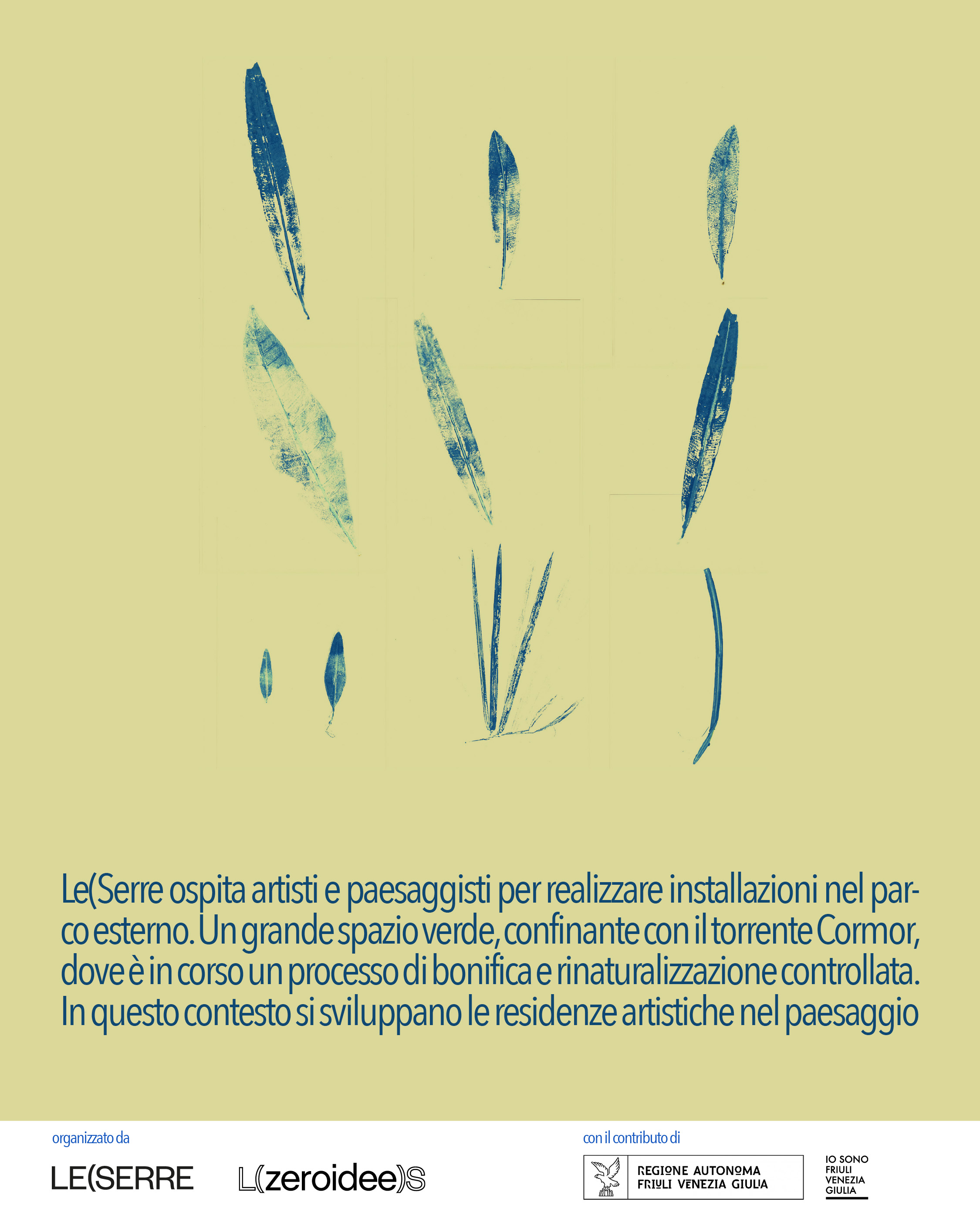 Le(Serre ospita artisti e paesaggisti per realizzare installazioni nel parco esterno. Un grande spazio verde, confinante con il torrente Cormor, dove è in corso un processo di bonifica e rinaturalizzazione controllata. In questo contesto si sviluppano le residenze artistiche nel paesaggio.