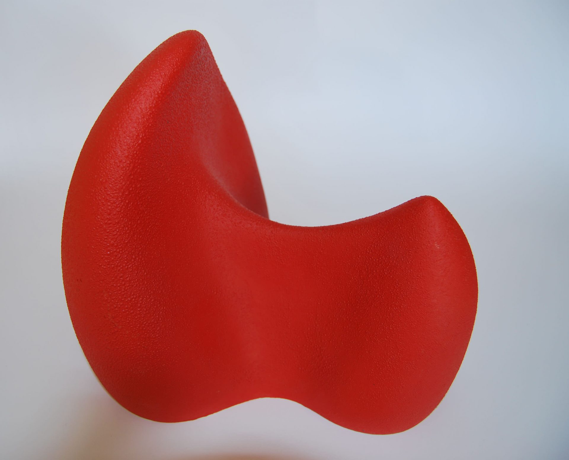 Le sculture di Simona De Caro nascono da una serie di “disegni automatici” realizzati attraverso l’uso diretto del colore e della linea. Le curve sinuose, partendo dalla base, si sviluppano in altezza creando la tridimensionalità attraverso piani concavi e convessi.