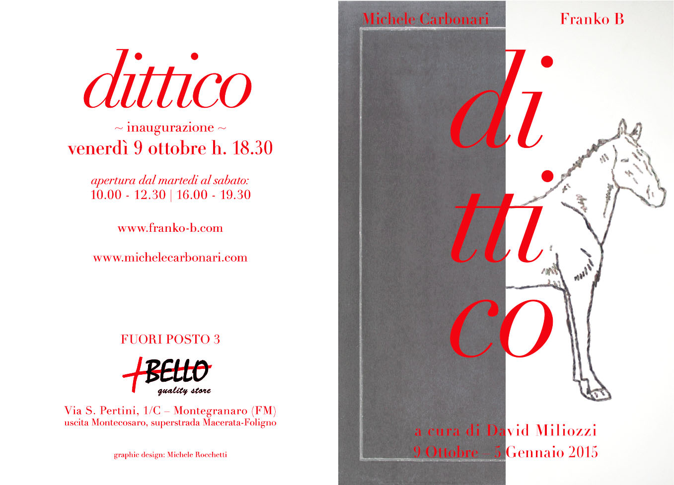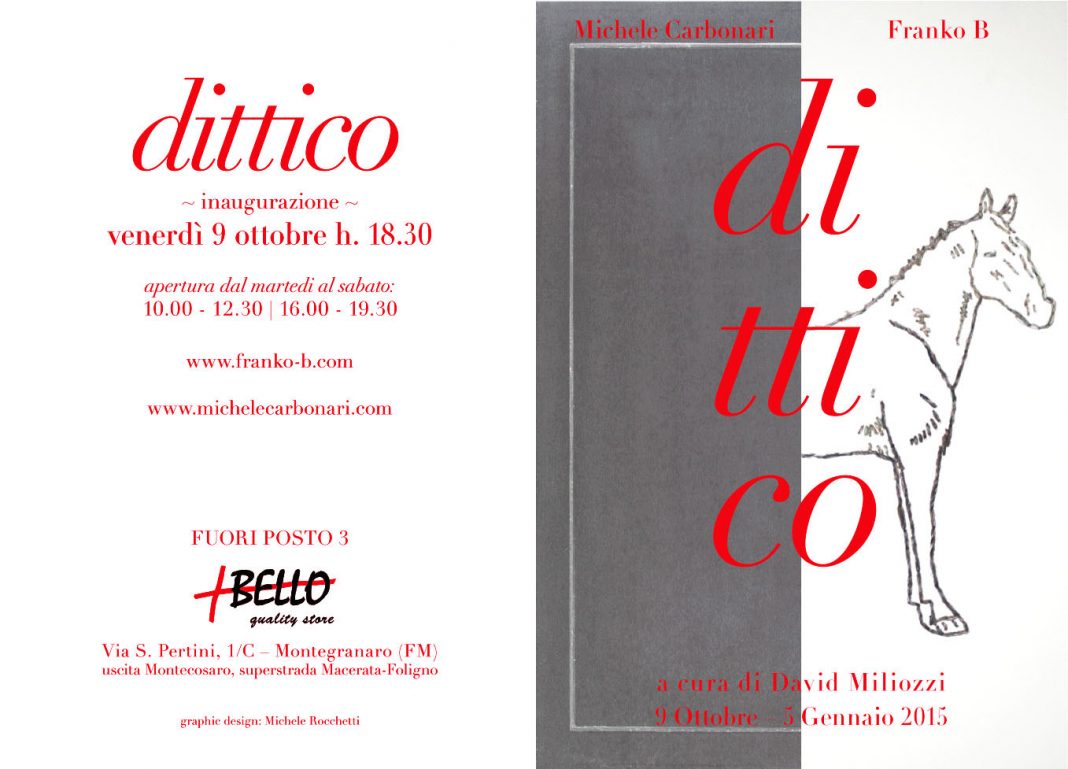 Con questo appuntamento, DITTICO, il curatore delle precedenti edizioni, l’artista Franko B, esporrà alcuni tra i suoi più recenti lavori, insieme al pittore Michele Carbonari.