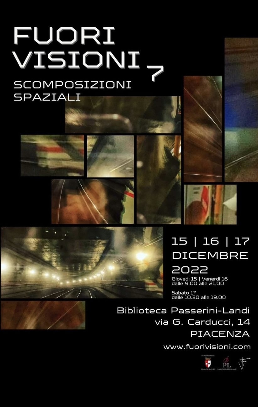 Fuori Visioni presenta, dal 15 al 17 dicembre 2022, la settima edizione dell’omonimo festival di arte contemporanea che, come ogni anno, prende vita nella città di Piacenza con una tre giorni dedicata ai molteplici linguaggi dell’arte contemporanea. Per l’occasione, una nutrita selezione di artisti esplora le innumerevoli scomposizioni spaziali che compongono il nostro orizzonte contemporaneo.