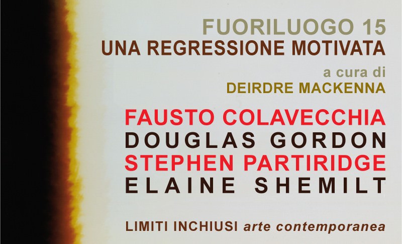 Per celebrare il quindicesimo anno di ‘Fuoriluogo’, la Galleria Limiti Inchiusi presenta ‘Una Regressione Motivata’, esibizione a cura di Deirdre MacKenna, Direttore di Stills – Scotland’s centre for photography – Fausto Colavecchia (IT), Douglas Gordon (GB), Stephen Partridge e Elaine Shemilt(GB)