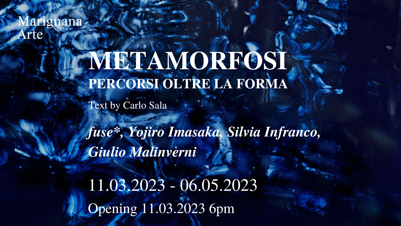 Marignana Arte presenta un nuovo progetto nello spazio principale della galleria mettendo in relazione i lavori di quattro artisti rappresentati (fuse*, Yojiro Imasaka, Silvia Infranco, Giulio Malinverni) che si confrontano sul tema della metamorfosi.