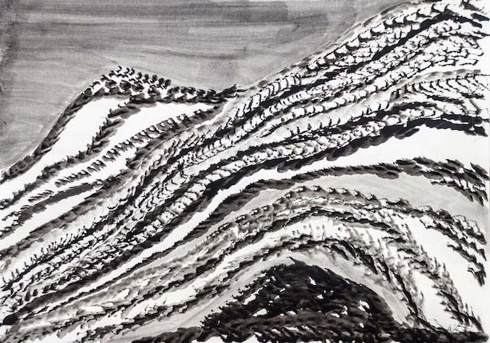 La mostra presenta 25 chine su carta e 14 dipinti ispirati al paesaggio naturale e al duplice mondo dell’artista, che vive attualmente tra l’Italia e la Turchia.