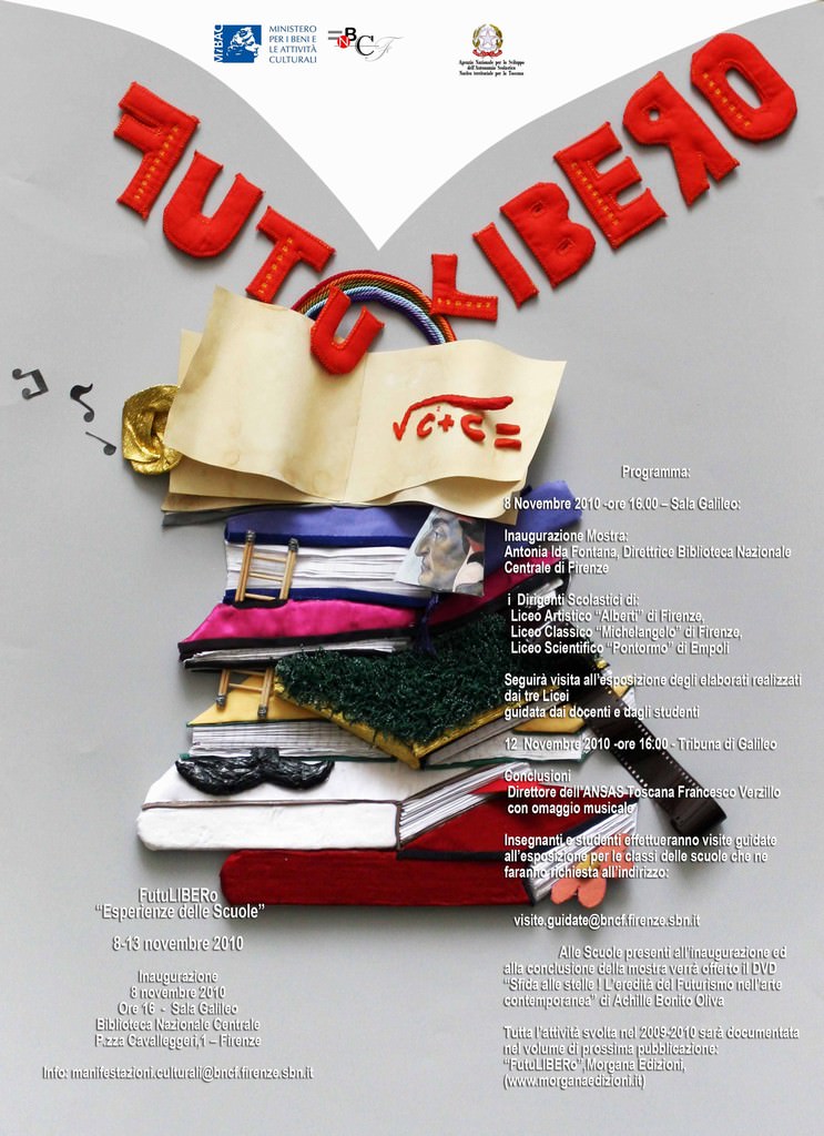 Nella Sala Galileo della Biblioteca Nazionale Centrale di Firenze, lunedì 8 novembre 2010 alle 16,00, in occasione del centenario del movimento Futurista, sarà inaugurata la mostra/esposizione FutuLIBERO “Esperienze delle scuole”.