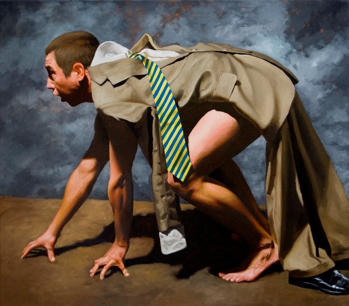 La realtà messa in scena da Gábor Szenteleki è caratterizzata da un’abbacinante nitidezza che comunica, a chi osserva le sue opere, una sorta di estraneità rispetto a queste figure, i cui gesti e le cui espressioni divengono però, allo stesso tempo, rappresentazioni simboliche dei grandi temi dell’esistenza umana indagati nelle tele.