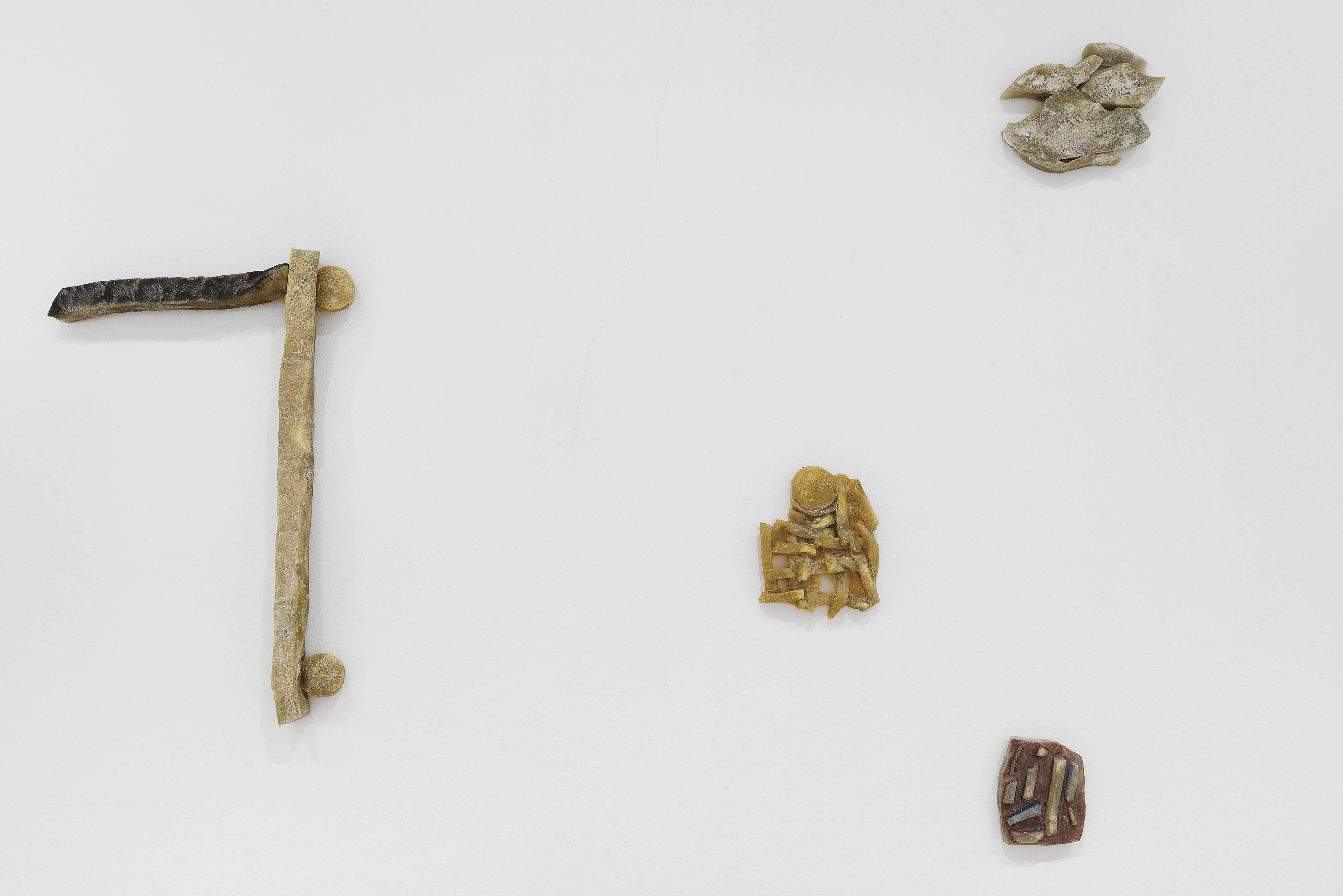 I rilievi, ricavati dai materiali di risulta delle imbottiture dei mobili, sono concepiti con l’intento di riportare alla mente le antiche spolia, ovvero le sculture decorative di reimpiego utilizzate sulla maggior parte degli antichi edifici romani. Esiste un'equivalenza diretta tra questa antica pratica di riutilizzo e quella proposta dall’artista all’interno del proprio processo, che trova eco nella descrizione di Hartley delle spolia come bolle di pensiero – ovvero frammenti di storia che fluttuano liberamente.