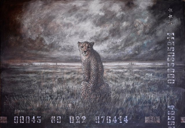 Il codice a barre - così come quello binario e genetico - che identificano rispettivamente il linguaggio digitale e le caratteristiche di un essere umano - rappresenta la conseguenza nelle nostre vite dei dettami coniati dal mondo dell’economia, l’influenza legata alla vendita di ciascun prodotto. “Il potere oggi viaggia attraverso il mercato: il sistema che toglie l’uomo dalla realtà. Noi siamo sempre più derealizzati: per essere contento, devi consumare dei beni fisici. Siamo nella materia e non più nello spirito. La mia pittura arriva a rappresentare gli animali dentro le città come il paradigmi di ciò che è selvaggio, selvatico, appartenente alla diversità, mentre tutto ciò che oggi l’uomo è spinto a realizzare va contro la diversità. Contro la vera ricchezza. Il denaro è il demonio, perché attraverso di esso posso acquistare delle presunte espressioni di diversità, che però omologano tutti”.