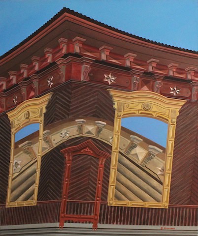 Le abitazioni russe con le quali l’artista ci fa incontrare, ambienti ammantati da un respiro fiabesco e da un’atmosfera onirica, risalgono all’originaria dacia, una casa di modeste dimensioni, interamente in legno, con tutt’al più delle decorazioni tipiche del luogo, la campagna russa, oggi di proprietà delle persone più ricche che le trasformano in autentiche ville.