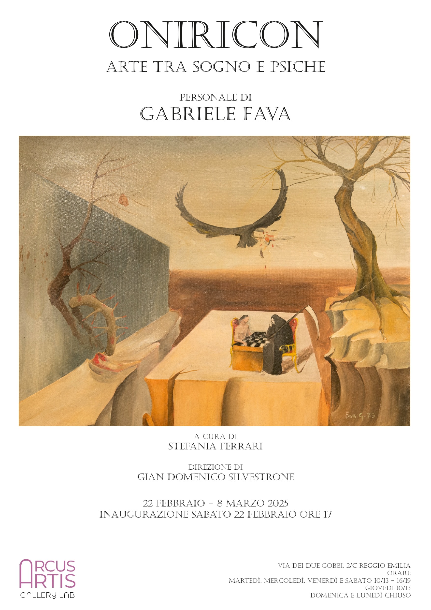Un viaggio nell’immensità del subconscio è la mostra dal titolo Oniricon – Arte tra sogno e psiche, personale pittorica di Gabriele Fava e che partirà sabato 22 febbraio ad Arcus Artis GalleryLab in via dei Due Gobbi, 2/c a Reggio Emilia, con inaugurazione alle 17.