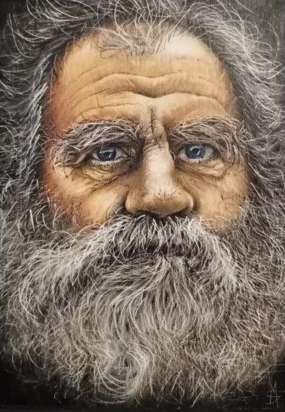 Parallelamente c’è poi una serie di piccoli ritratti di persone anziane: volti pieni di rughe e di barbe e capelli bianchi che affiorano dal buio, da fondi neri, o che nel buio affondano. E in questo caso è impossibile non pensare ai tanti anziani che il Covid 19 si è portato via.