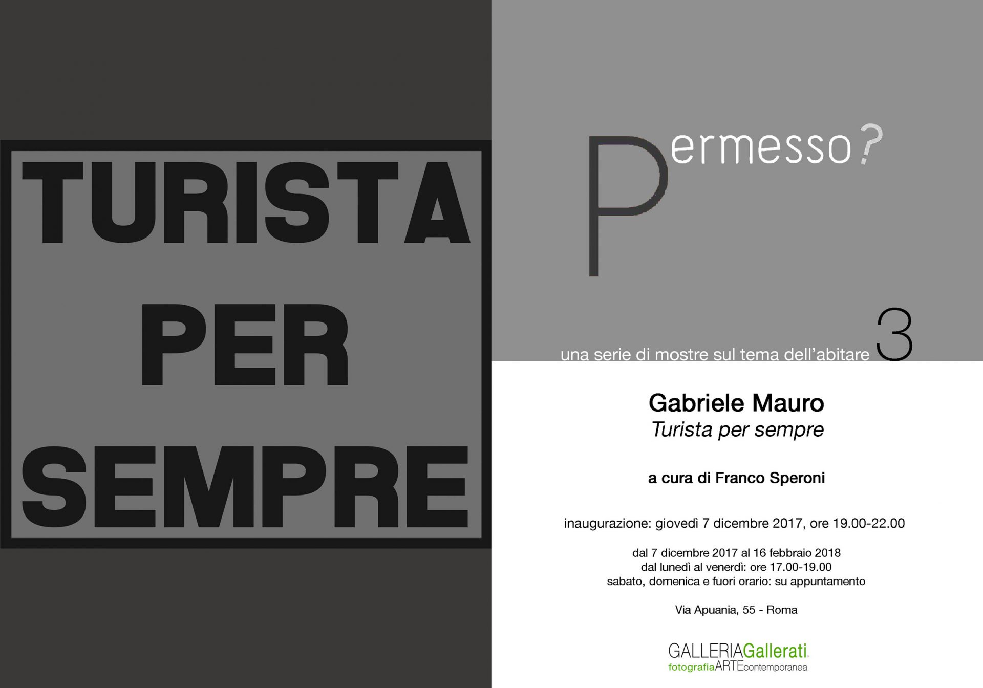 Si inaugura giovedì 7 dicembre 2017, alla Galleria Gallerati di Roma, Turista per sempre, una mostra personale di Gabriele Mauro a cura di Franco Speroni.