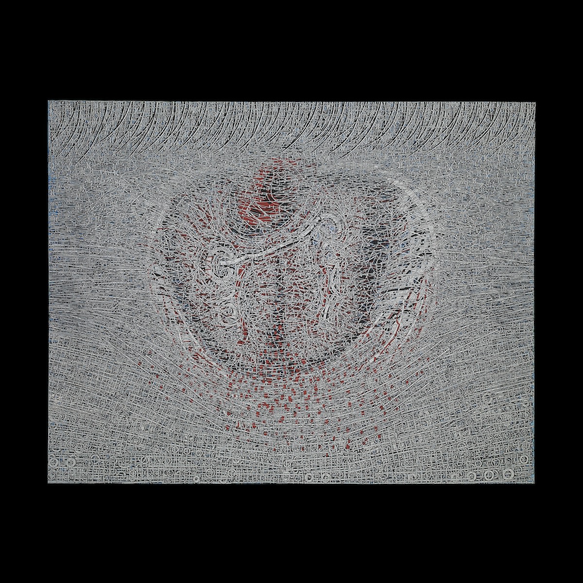 Nell’apparente casualità delle forme, le sue opere contengono sempre uno o più centri nevralgici, origine e arrivo di linee e segni di diverso tipo. Ed è il segno che coinvolge, trascinando chi guarda attraverso le onde e gli intrecci sulla superficie, fino a creare architetture e intricate forme organiche.