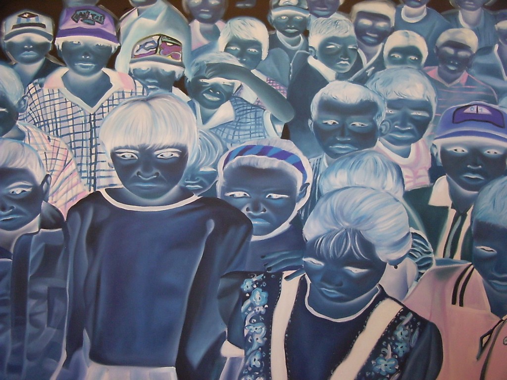 I volti, soprattutto quelli dei bambini, finiscono per diventare leggeri ed eterei, senza perdere una carica luciferina. Il lato oscuro è sempre presente. Tecnicamente vi è anche una memoria storica, le sperimentazioni delle avanguardie, le foto off camera di Man Ray, ma rilette in una chiave concettuale da bad painting. L’artista non pratica nessuna forma di realismo, anche se è della realtà che si occupa e s’interessa. I suoi ritratti mettono in evidenza una generazione nascente, attraverso un almost blue che richiama il buio, la notte, che assorbe le figure nel momento in cui le fa rimbalzare sulla superficie.