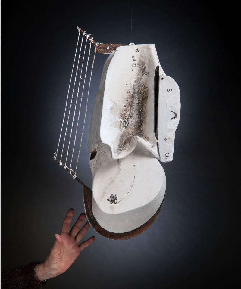 Le opere di Gabriella Benedini possono essere percepite come presenze arcane e ancestrali, vestigia di civiltà lontane, ma al contempo sono calate nell’attualità, parlando di inquietudini moderne, seppure non contingenti. Si pongono insomma come oggetti “di confine”, e sfuggono a precise definizioni statutarie, collocandosi tra la scultura, la pittura, la grafica, l’installazione, l’assemblaggio. Molteplici sono anche i materiali impiegati e le procedure che li trasfigurano in funzione espressiva, sempre alla ricerca della tridimensionalità e del non-banale. Il tempo, la memoria, la poetica del frammento, la presenza costante dell’elemento musicale (benché spesso rivolto, oppositivamente, nel silenzio) sono i tratti distintivi del modo di fare e pensare arte di Gabriella Benedini, che trova in questa nuova personale un’ulteriore conferma di un’originalità che la rende unica nel panorama contemporaneo.
