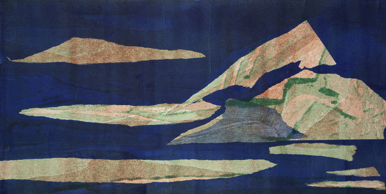 Il titolo della mostra ci porta alla mente il blu del profondo mare e le larghe terre d’Abruzzo, ma chiaramente siamo nel mondo dell’astrazione per cui non vedremo il mare, le montagne o le terre d’Abruzzo, piuttosto ne sentiremo l’atmosfera, ne percepiremo la presenza e ne vedremo i colori. Morbide le profondità azzurre-blu del mare, mentre terragne, bruni, e marroni le ruvide montagne. E le opere sono da vedere, da guardare, da osservare attentamente, da ‘toccare’.