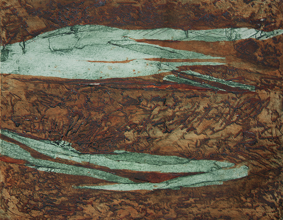 Gli attrezzi sono diventati altri, non c’è più la delicatezza dello scalfire la cera in superficie, tanto sarà l’acido ad agire per confermare il segno. In questa nuova situazione, invece, l’artista dovrà agire in prima persona: incidendo, scalfendo, strappando per avere i toni desiderati, anche imprimendo o aggiungendo diverse materie per ottenere i grigi desiderati.