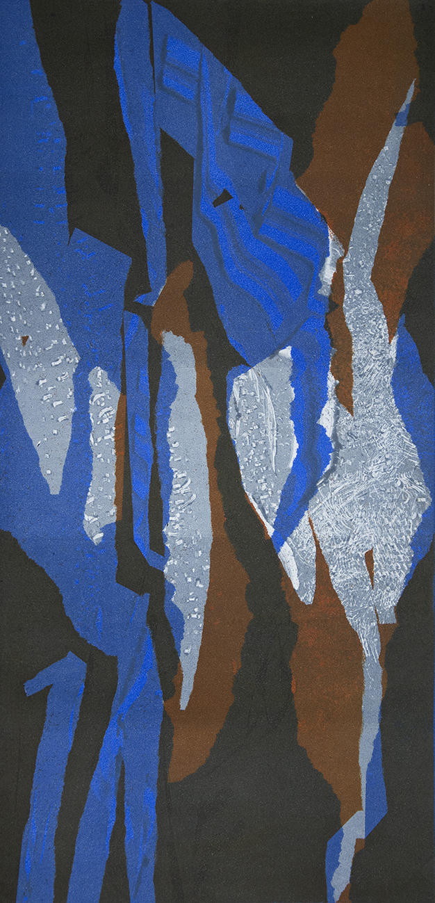 Ormai, abbandonata l’idea della matrice definitivamente metallica, non più zinco, non più rame oppure non esclusivamente solo questi, l’artista opta per matrici magari più materiche, più plastiche, povere, che si esauriscono come nel caso dell’uso di cartone polionda con la pressione di un unico esemplare, con l’applicazione di gessi dai risultati palpabili ed evidentemente visibili, e/o con l’applicazione di fondini ottenuti da strappi di carte, certamente effetti che conferiscono al foglio straordinari risultati di una tridimensionalità quasi scultorea.