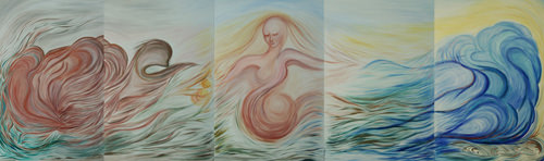 La mostra riunisce un grande telero e altre opere dell’Artista italiana, che attiva da anni nell’arte contemporanea, si misura sul tema della natura, del mondo e dei 4 elementi che lo compongono.