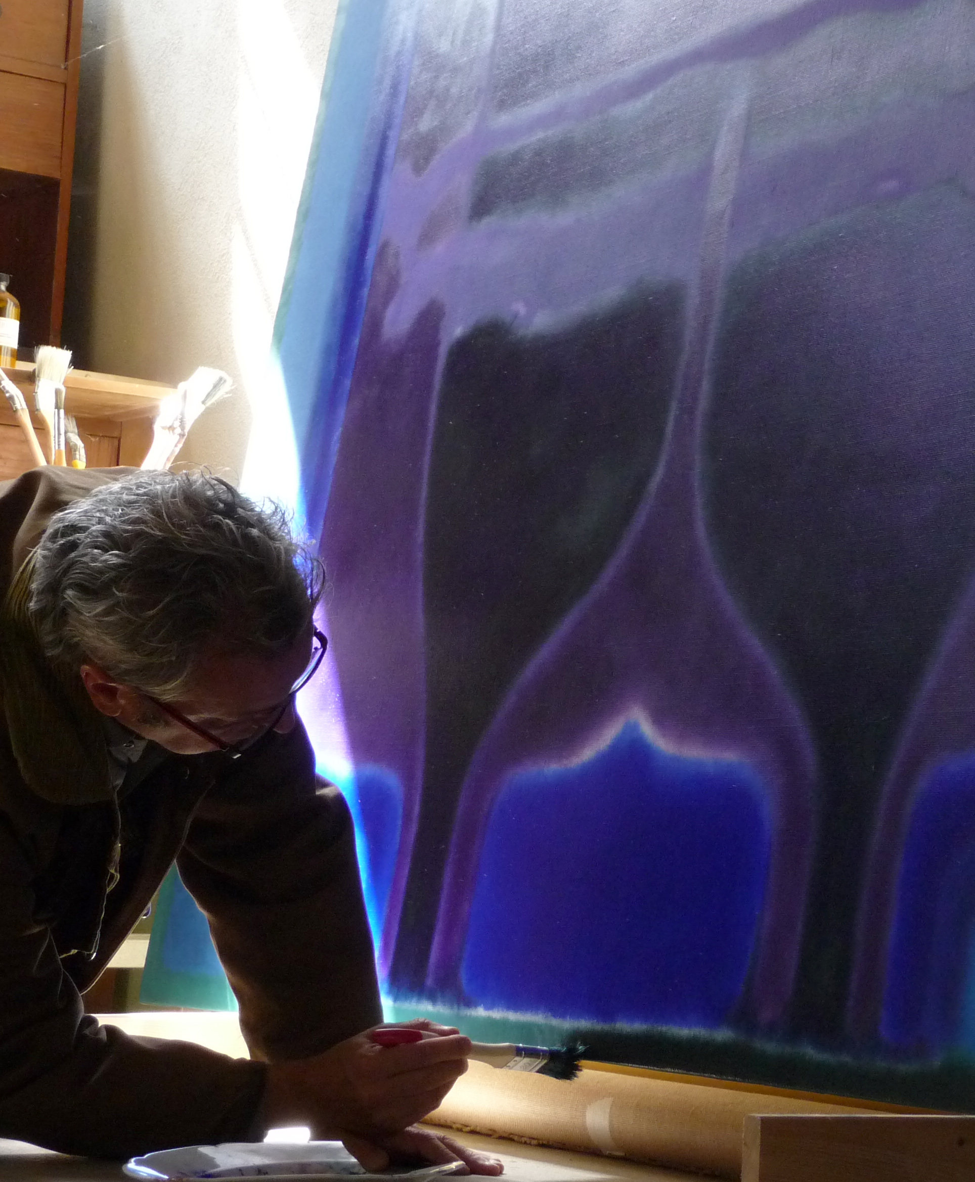 Le “voci montanti del tempo“ riecheggiano nelle sue opere come nell'alveo di conchiglie perdute nell'abisso e risalgono da profondità ancestrali con la medesima naturale necessità dell'ossigeno che urge verso la superficie. I pigmenti, la cui metodica e laboriosa stesura stratificata rammenta un ostinato in musica, pullulano di rimandi letterari plausibili.