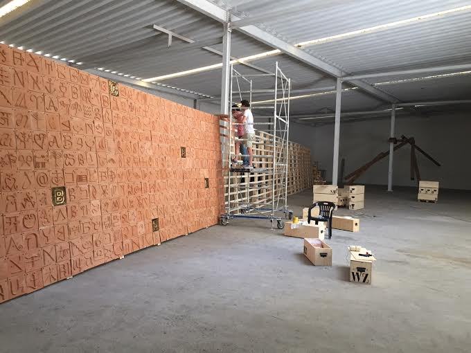Grillo presenta un’ opera inedita di 3 metri per 30, composta da 1400 bassorilievi in terracotta, che svela il codice di un personale alfabeto “grillico” nel quale si fondono le culture di tutti i tempi