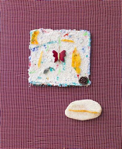 legno consunti dal tempo ai piccoli sassi, applicati direttamente sulla tela e, ancora,