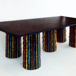 La mostra intreccia sui i due piani della villa lavori storici e rivisitati, come l’iconica poltrona Up5&6 che si impone nello spazio che accoglie i visitatori al piano terra, con le sue forme antropomorfe ingigantite da dea della fertilità che, nello stesso tempo, denunciano la condizione della donna, ancora oggi vittima di violenze, o Moloch del 1972, una versione macro della celebre lampada da tavolo L1, nata nel 1937 grazie al designer Jacob Jacobsen, con i lavori più recenti come le Pelli (Industrial Skin) in resina sottile come uno strato di epidermide, appesi al soffitto della grande stanza decorata al primo piano, i Vasi, che sembrano sciogliersi come cera colorata fusa, i tavoli e le sedie, alcune come la serie Pratt chair iniziate già negli anni ‘80 e le lampade, il Pulcinella e la Donna applique di papier mâché ricoperto di resina poliuretanica.