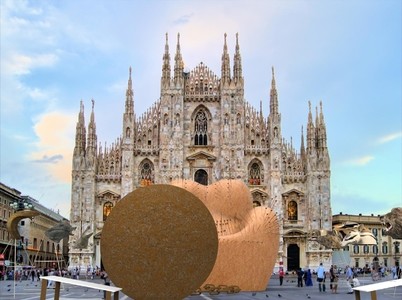 La gigantesca opera Maestà Sofferente di Gaetano Pesce in Piazza Duomo