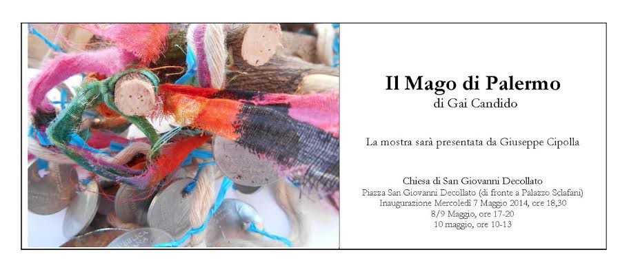 si inaugura mercoledi 7 Maggio a Palermo la mostra "Il Mago di Palermo", allestita nei suggestivi spazi della Chiesa di San Giovanni Decollato, sita nell’omonima piazza. L’esposizione presenta l'ultima produzione inedita di Gai Candido, artista tra i più singolari e fantasiosi del secondo Novecento siciliano.