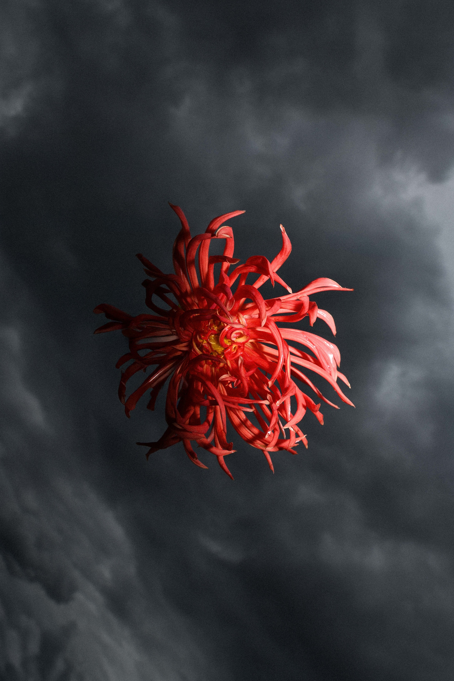Le fotografie di Anselmi Tamburini – nitide, iperdefinite, enigmatiche – rappresentano due elementi archetipici, il fiore e la radice, raffigurati sullo sfondo di un cielo in continuo mutamento. Un’intuizione nata osservando i rituali quotidiani della comunità andina: ogni giorno, le persone decoravano i loro cappelli con fiori diversi, scelti in base alle emozioni che provavano in quel momento. Per loro non erano semplici ornamenti, ma simboli potenti, metafore di connessione, appartenenza e trasformazione.