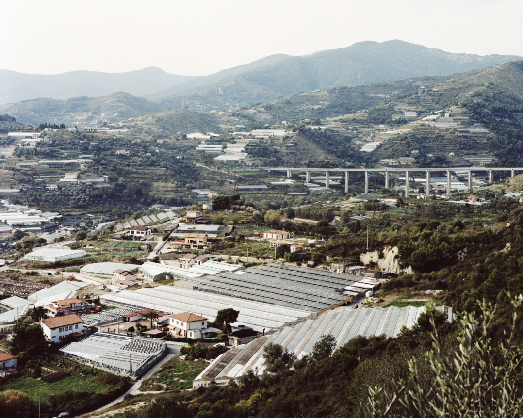 Cambiaggi che è cresciuta in Liguria, una regione nota per la coltivazione dei fiori, dà a questa tematica un respiro per ora europeo e presto mondiale. In Liguria diventano una forma di urbanizzazione agricola, in aperto conflitto con il paesaggio circostante. Da questi luoghi, fortemente compromessi dall’industria dei fiori, ora in declino economico, prende avvio la ricerca fotografica dell’autrice genovese, secondo un progetto in costante crescita.