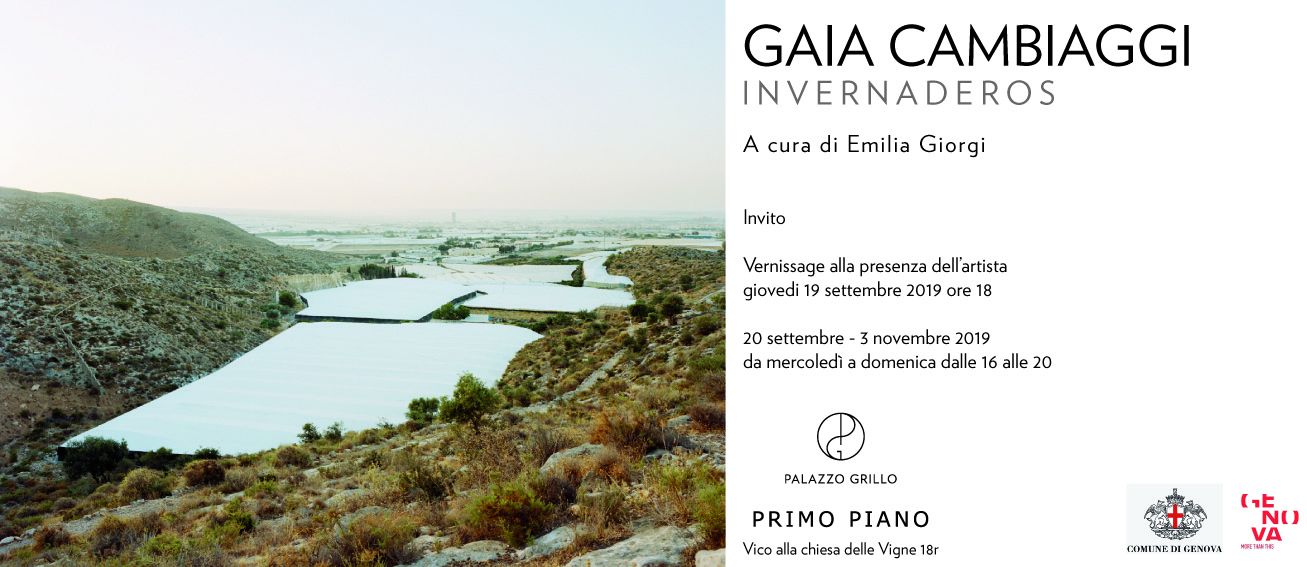 Primo Piano di Palazzo Grillo è lieto di ospitare la personale di Gaia Cambiaggi, “Invernaderos”, a cura di Emilia Giorgi. Una delle ricerche fotografiche più riuscite dell’artista che indaga le trasformazioni del sistema di produzione agroalimentare nel mondo, con particolare attenzione all’agricoltura in serra. Il progetto prende avvio nel 2013 per intercettare temi di natura geopolitica legati al territorio, all’economia comunitaria e al flusso di lavoratori coinvolti.