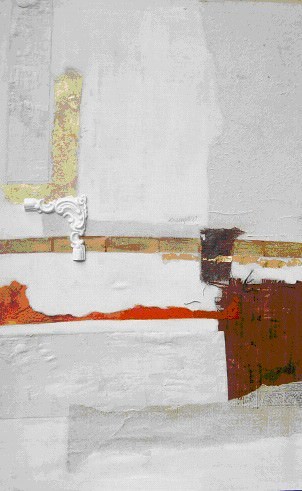 Nelle grandi tele di Gaia la delicatezza della carta, indietreggia davanti alla rudezza del bitume, alle croste del gesso irradiate da squarci di nobile argento, l’uso di materiali diversi crea orizzonti della fantasia, paesaggi onirici e cieli fantastici. I mondi astratti di Gaia Roma, prendono forma attraverso un sapiente uso del colore, e la incredibile diversità di materiali “bidimensionali” utilizzati.