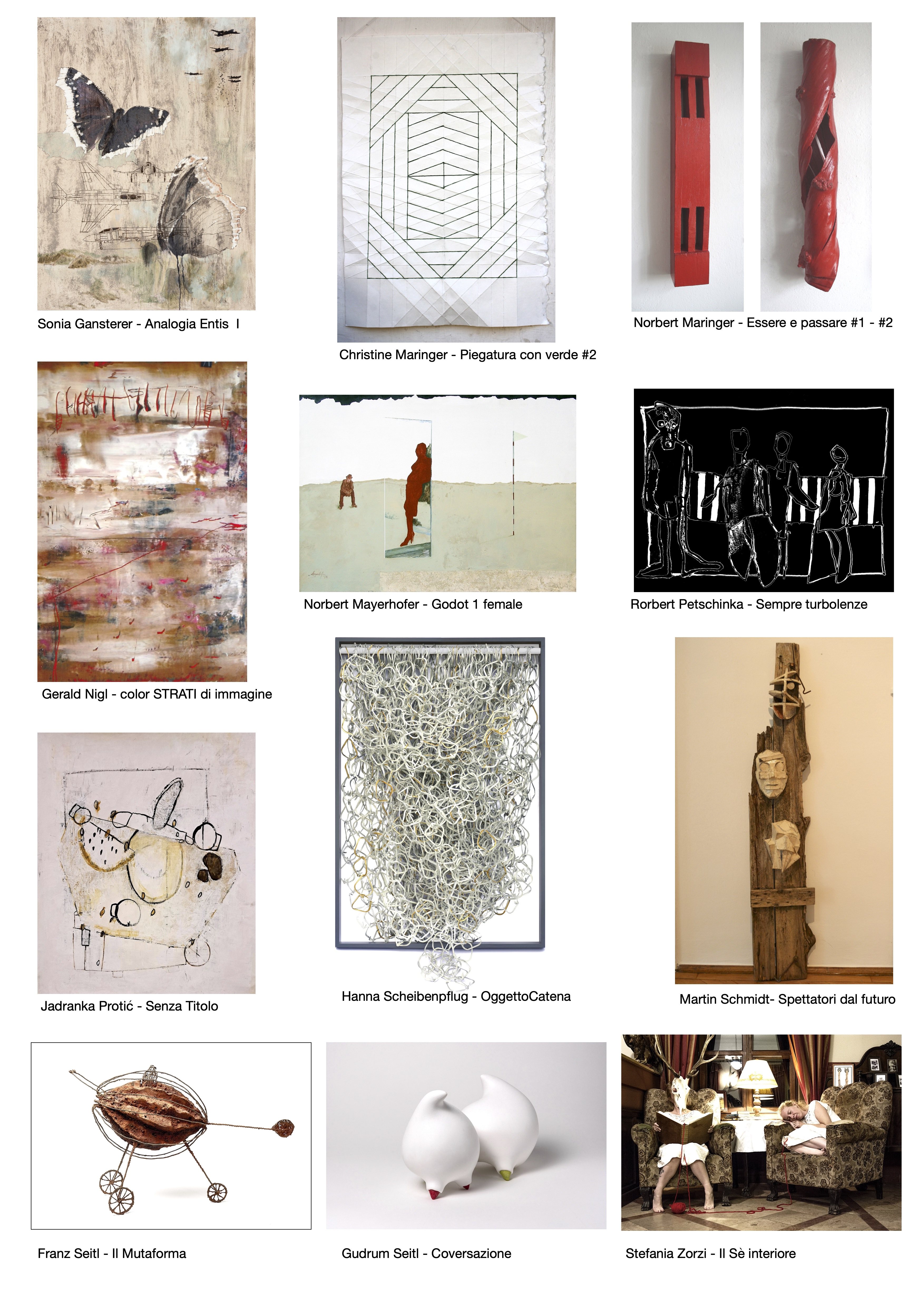 Le opere esposte spaziano dalla pittura alla scultura, dalle opere-oggetto alle installazioni, dall’incisione alla fotografia. Ogni artista esprime, attraverso una maturata tecnica e sensibilità, la propria personale e profonda relazione con il mondo, concretizzandola in opere d‘arte, che diventano fonti di stimoli e interrogativi riguardo l’Uomo e l’era contemporanea in cui viviamo.