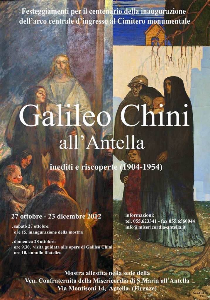 Nell’ambito dei festeggiamenti per il centenario (1912-2012) dell’inaugurazione dell’arco centrale d’ingresso al Cimitero monumentale di Antella si inaugura sabato 27 ottobre alle ore 15 presso la sede della Ven. Confraternita della Misericordia di S. Maria all’Antella la mostra Galileo Chini all’Antella. Inediti e riscoperte (1904-1954. Un percorso nell’arte ‘sacra’ e umanitaria con opere provenienti da varie collezioni.